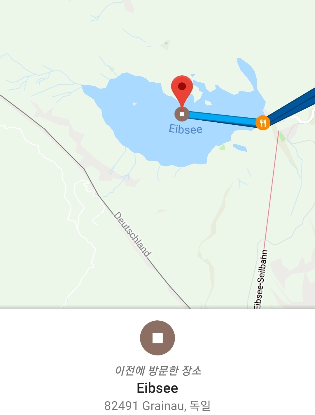 아입제로 가는 버스EibseeBus를 통해서 아입제 입구에 왔다면 주차장도 있고 해서 조금 복잡할 수 있지만, 사람들이 드나드는 큰 통로는 단 한 곳 뿐이다. 그곳으로 들어서면 아입제 앞에서 머물 수 있는 호텔이 있고, 그 주변에 먹거리들이 조금씩 있다. 더 들어가면 아입제를 발견할 수 있다.