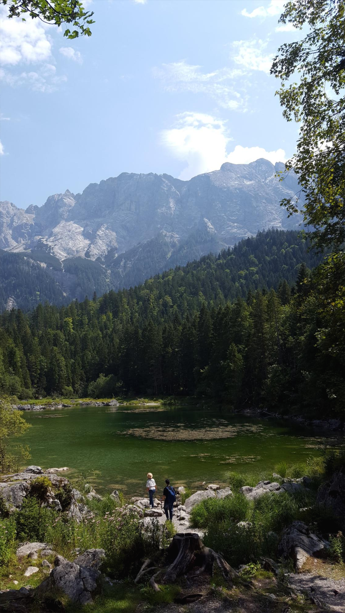 한국인이 이 부근으로 여행을 온다고 하면 100에 90은 츄크슈피체를 간다. 거기는 만년설도 잘하면 볼 수 있으니까... 아입제는 그냥 잔잔한 호수처럼 보일지 몰라도, 주변에 둘러쌓인 모습을 본다면 이곳도 올만 하다. 얕은 곳이 몇 군데 있는데 그곳에서 모두 일광욕을 즐기거나 수영을 한다. 카약 카누를 타기도 한다. 나는 아침에 수영복 챙겨야지^^하고 수영복을 깜빡했지만 반바지를 입은 터라 그냥 물 속에 풍덩 빠졌다. 바닥에 돌들이 많아서 좀 평탄하게 걷긴 어려웠지만 발만 담군 친구도 좋았다고 얘기해주었다.