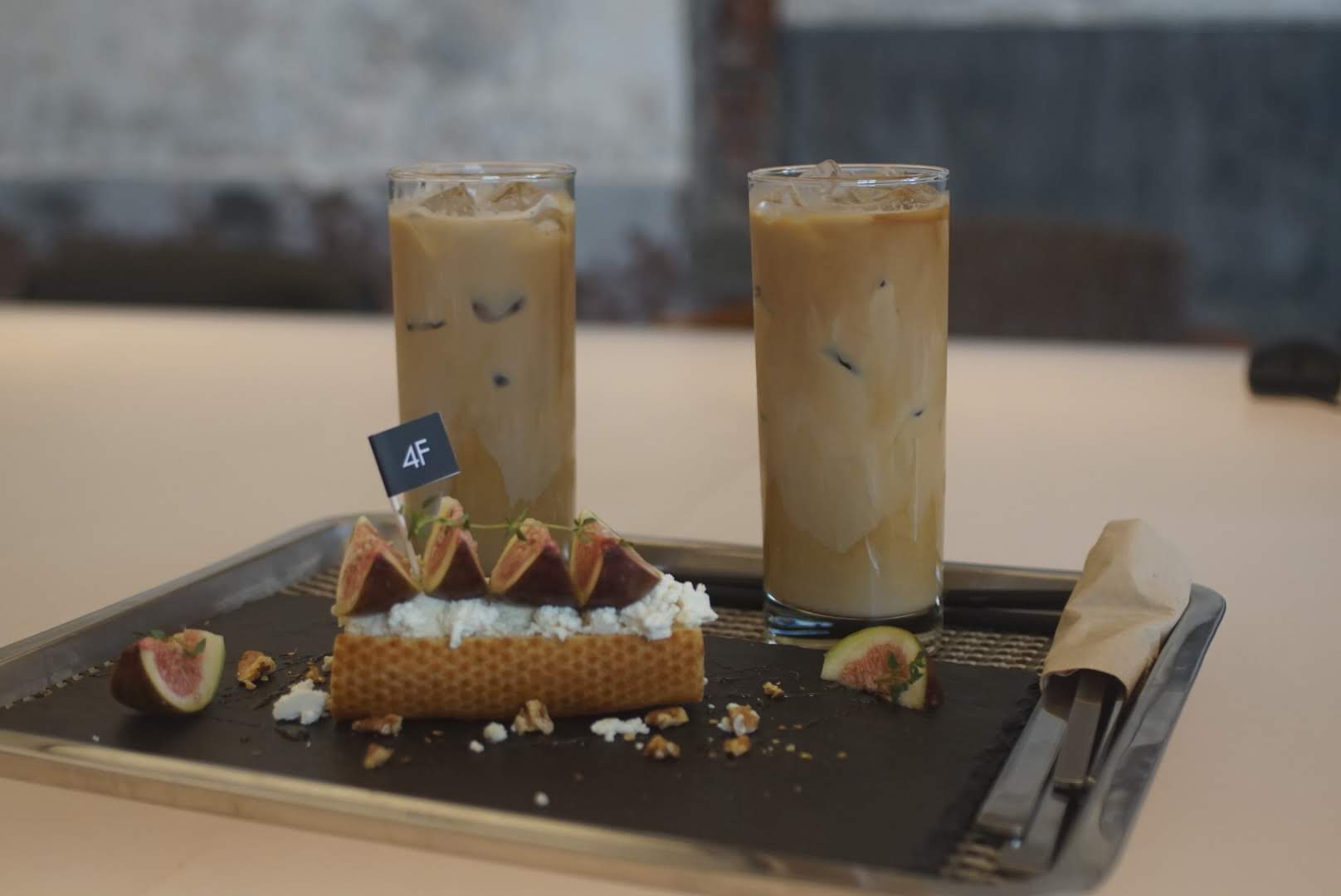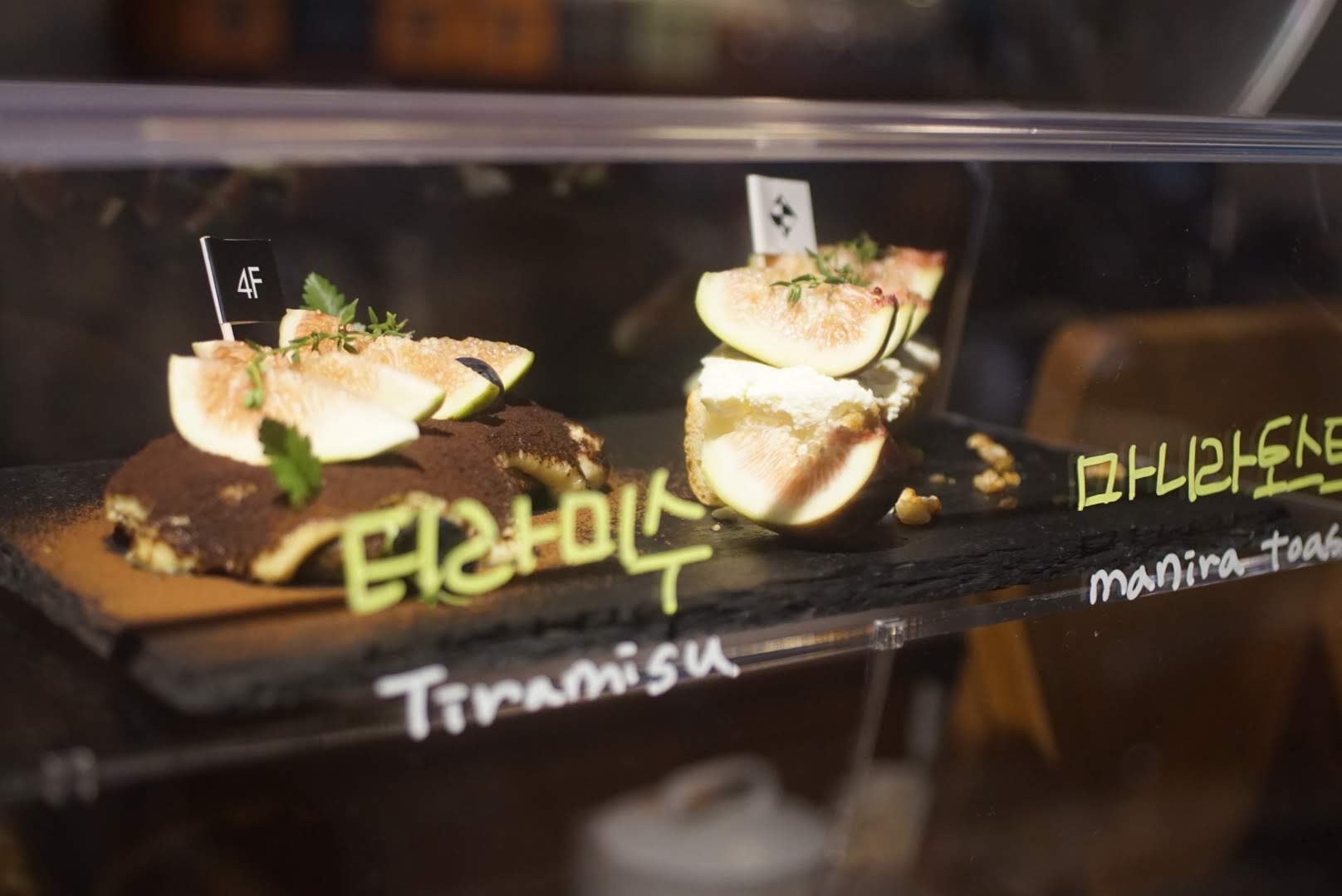 무엇을 고를지 망설이니까 종업원께서 우리에게 "방산라떼는 꿀 들어가있는 저희 시그니처 메뉴고, 남자분들이 많이 마십니다."라고 해서 결정하였다. 마니라토스트라는 메뉴는 위에 무화과도 올려있고 생각보다 신기하게 생겨서 같이 주문하였다.