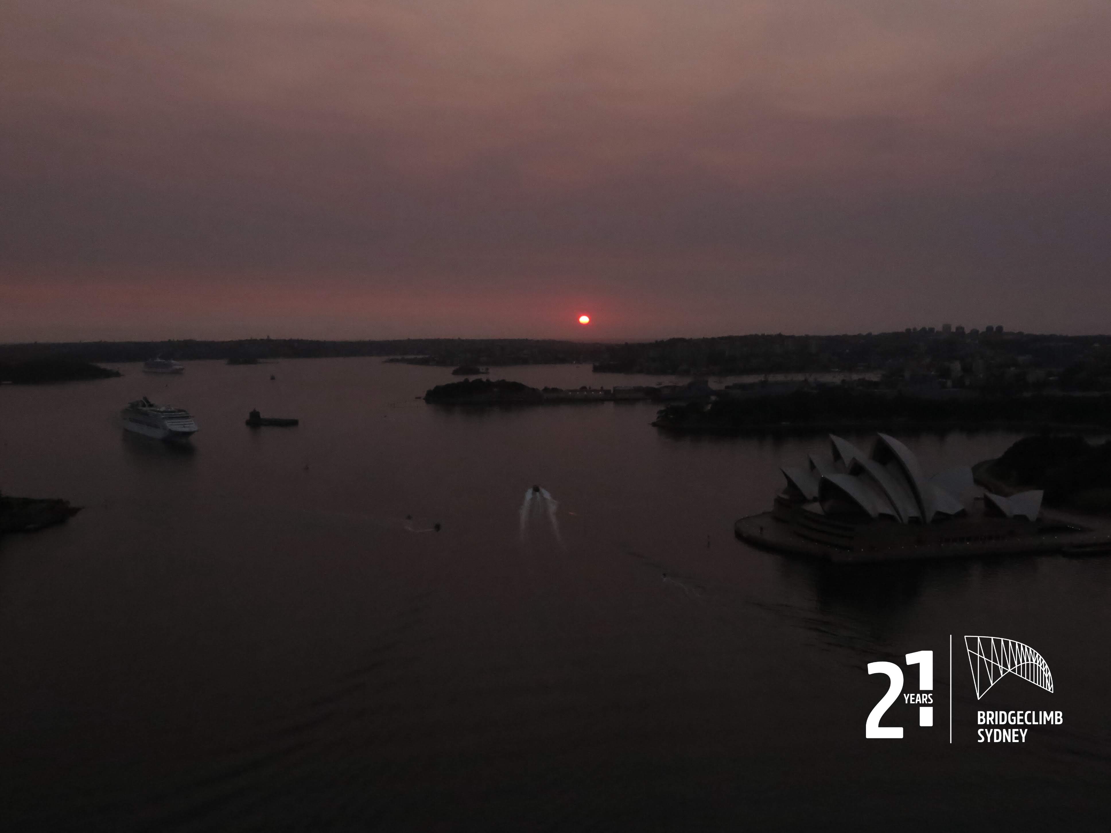 Summit에 해당하는 것으로, 실내에서 훈련하던 급경사 계단을 올라가서 바로 하버브릿지 등반을 시작하는데 날씨가 쾌청하기보다는 약간 안개가 껴있는 모습이었다. 해안가라서 그랬던 것 같은데 그때는 날씨가 흐리다고 생각했다. 분명 5시는 된 것 같은데 벌써 8시는 된 것 마냥 모든 건물들이 잘 보였다. 해가 올라오는 게 안보여서 시무룩했지만 이내 곧 해가 보였고, 나쁘지 않았다. 12월엔 호주 일출시각이 매우 이르기 때문에 보기 위해 일어나기 도전할 엄두도 안났는데 돈을 많이 내고 나니 이렇게라도 볼 수 있어서 귀감이 남달랐다.