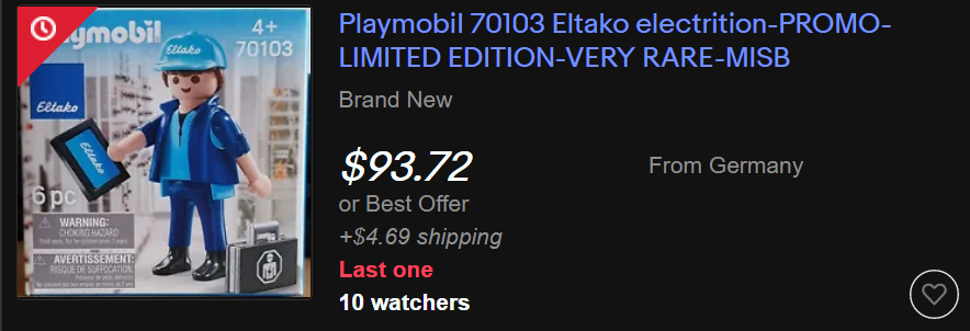 어느 날 이베이를 둘러보다가 신기한 콜라보 제품이 눈에 들어왔다. 플레이모빌이 Eltako라는 회사와 promo sonderfigur를 내놓았기 때문이다. 어떠한 기업인지 아래에서 살펴보자.